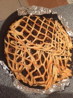 Lack of time meant that I used ready made shortcrust pastry. I lined the bottom of a pie tin and spooned in the mincemeat filling. I used my lattice cutter to make the top of the pie, though I'm still not very good with getting to grips with it! I brushed the top with milk, and cooked it in the oven for about 25 minutes until the top was golden brown. My fiancé really enjoyed it – while I stuck to an apple crumble as I had fruit that needed using up, but he doesn’t like apple!