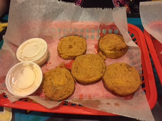 I had chicken and waffles with a side of mac and cheese, which was lovely (and chicken does go with waffles, bizarrely- it's not a combination I've ever seen before in the UK!). It was only $9.99 for a chicken breast and leg, buttered waffle and one side item which was pretty cheap. My mother in law had fried green tomatoes and sweet potato fries, which she really enjoyed, but the portions were huge!