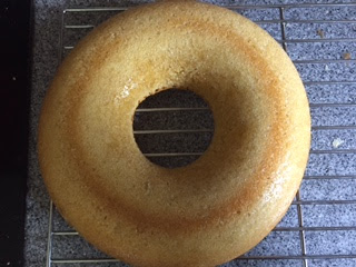 I filled the cake with jam and buttercream – the cake mould worked perfectly, turning out the bake cake into a perfect ring doughnut shape.